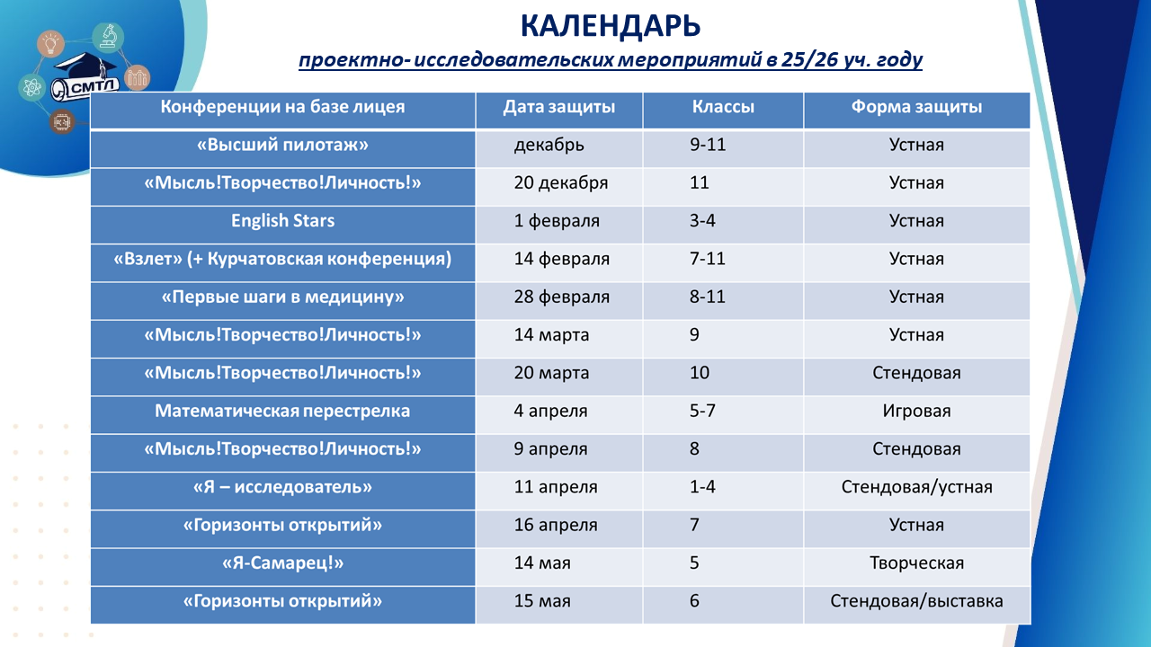 Регламент организации проектной деятельности учащихся 5-11 классов МАОУ СМТЛ в 2025-2026 учебном году